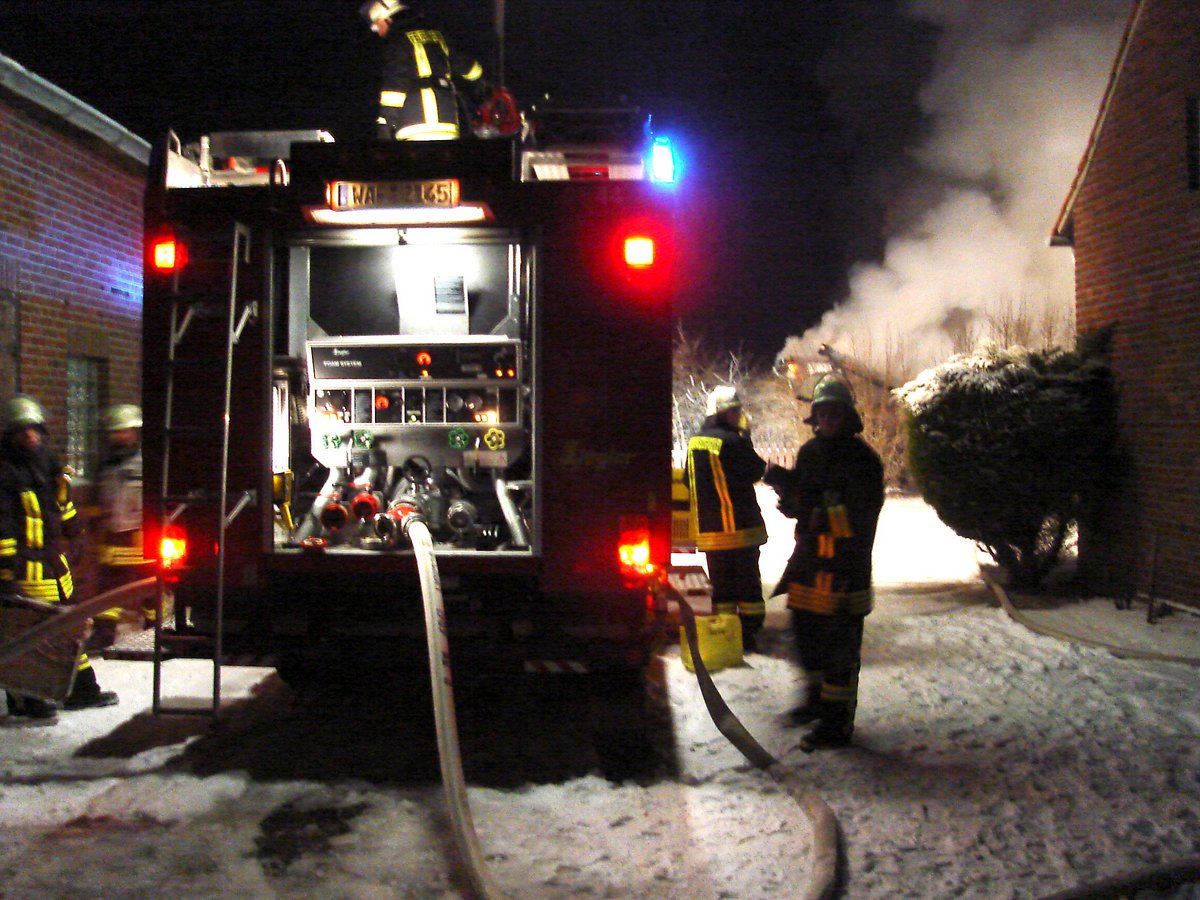 Knapp 24 Stunden nach dem Ende des letzten Großbrandes wurde die Feuerwehr Telgte zu einem gemeldeten Bauernhofbrand alarmiert. Schon auf der Anfahrt war der Feuerschein hell zu sehen.