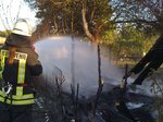 Der Brand der ersten Gartenhütte breitete sich auf eine weitere Hütte auf dem angrenzenden Grundstück aus.