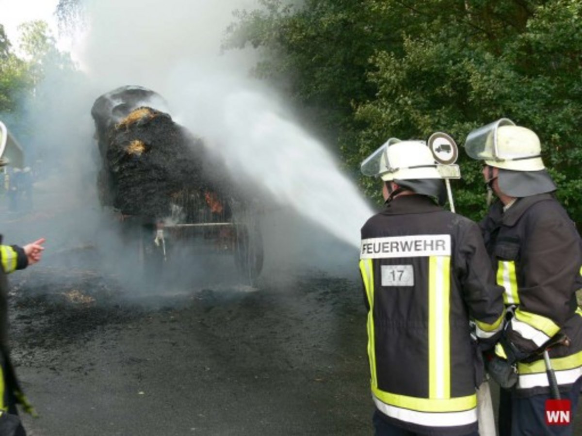 Ein Trecker, der mit zwei Anhänger voll Stroh von Pleistermühle aus in Richtung Telgte unterwegs war, hatte Feuer gefangen.