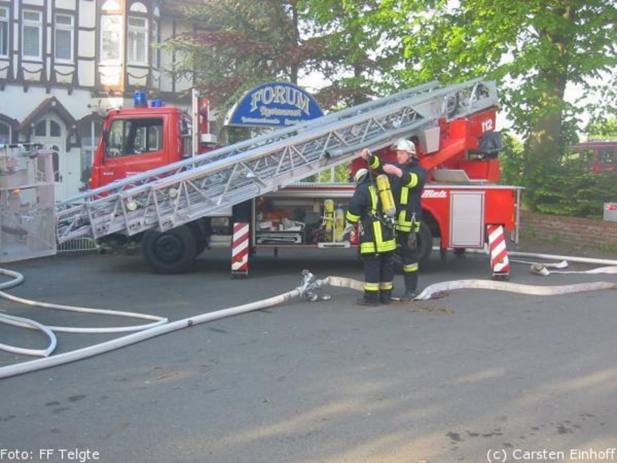 Einem Radfahrer war die Rauchentwicklung im Dachbereich des Lokals aufgefallen. Alarmiert wurden aufgrund des Objektes neben der Feuerwehr Telgte auch der Löschzug Handorf sowie Kräfte der Berufsfeuerwehr Münster.