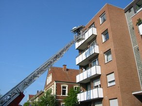 Nachdem sie stabilisiert war, wurde sie mit der Drehleiter aus dem 5. Obergeschoss zum Erdboden befördert.