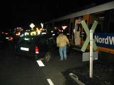 Viel Glück im Unglück hatten die drei Insassen eines PKWs, der beim Abbiegen von der B64 in Raestrup mit der Regionalbahn Telgte-Warendorf kollidierte.