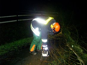 In der Bauernschaft Berdel musste ein umgestürzter Baum von einem Wirtschaftsweg geräumt werden. Mit der Motorkettensäge wurde der Baum zerlegt und zur Seite geräumt.