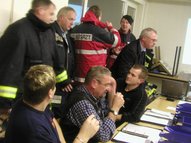 Auf der "von-Büren-Allee" war ein Reisebus mit über 20 Insassen verunglückt, so die Übungslage. Zur Versorgung der Verletzten wurden Rettungsmittel und Kräfte des THW aus dem gesamten Kreisgebiet nachalarmiert. Die IuK Gruppe sowie die Führungsgruppe des Kreises unterstützten die Einsatzleitung vor Ort.