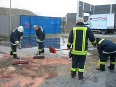 500l Speiseöl ergossen sich über den Hof der Firma Wulff. Beim Abladen des 1000l Gebindes war dieses beschädigt worden. Die Einsatzkräfte des Löschzuges Stadt bindeten das Öl mit etlichen Säcken Ölbindemittel, bevor es von Mitarbeitern der Firma wieder aufgenommen und entsorgt wurde.