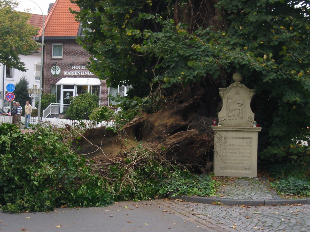 Ohne äußere Einwirkung brach am Nachmittag ein großes Stück Baumstamm aus der Marienlinde, einem der Wahrzeichen von Telgte.