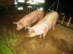 Nach Angaben der Polizei Warendorf befuhr ein 36-jähriger LKW-Fahrer aus Südlohn mit einem Viehtransporter (LKW mit Anhänger), beladen mit 166 Schweinen, die L 588 aus Fahrtrichtung Greven kommend in Richtung Westbevern. In einer Rechtskurve kam der Anhänger des Gespanns nach rechts von der Fahrbahn ab, schaukelte sich auf, und kippte in den Straßengraben. Daraufhin kippte auch die Zugmaschine auf die Seite. Zur Bergung der Schweine wurden zahlreiche Einsatzkräfte der Feuerwehren Telgte und Westbevern eingesetzt. Durch den Unfall verendeten 49 Schweine. Der Gesamtsachschaden wird auf cirka 70.000.- Euro geschätzt. Die L 588 musste wegen der Bergungsarbeiten bis kurz vor 09:00 Uhr in beide Fahrtrichtungen gesperrt werden.