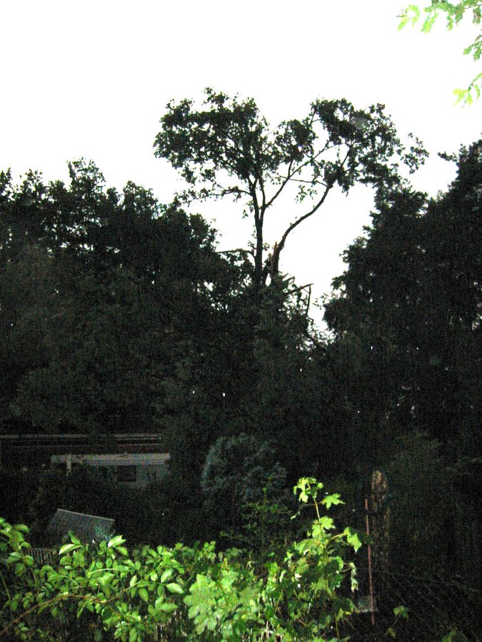 Planwiese: Baum droht auf Radweg zu fallen, Einsatz der Drehleiter dank abgezogenem Gewitter möglich (ca.