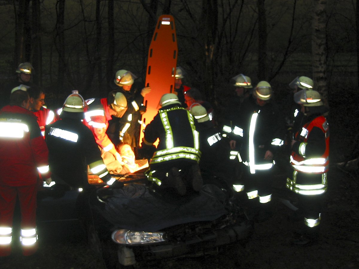 Die Einsatzkräfte der Feuwehr befreiten den eingeklemmten Fahrer aus seinem Fahrzeug, sicherten die Unfallstelle ab und unterstützen den Rettungsdienst.