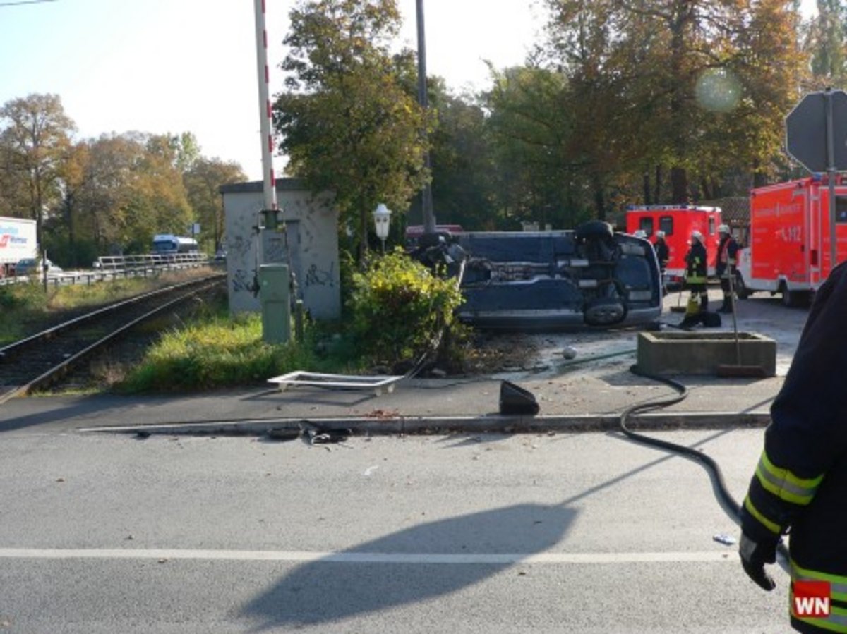 Auf Grund der hohen Geschwindigkeit verlor er jedoch die Kontrolle über das Fahrzeug und fuhr gegen einen Ampelmast. Danach schleuderte das Auto auf den Parkplatz einer angrenzenden Gaststätte und blieb auf der rechten Seite liegen. Die vier PKW-Insassen, zwei Frauen und zwei Männer, wurden leichtverletzt und in Krankenhäuser nach Warendorf und Münster transportiert. Als Ursache für den Unfall gab der Fahrer einen möglichen Defekt am Tempomat an. Der Mercedes wurde deshalb sichergestellt und wird, nach Rücksprache mit der Staatsanwaltschaft, technisch untersucht.