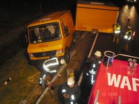 Zu einer aufwändigen Hilfeleistung nach Verkehrsunfall rückten am Dienstagabend Kräfte des Löschzuges Stadt aus. Auf der L585 war ein aus Richtung Wolbeck kommender Transporter mit Anhänger von der Fahrbahn abgekommen und auf den Grünstreifen geraten. Der Anhänger riß vom Zugfahrzeug ab. Das Zugfahrzeug überfuhr ca. 100m Leitplanke, bevor es auf dieser zum stehen kam. Der Fahrer des Fahrzeuges wurde verletzt und mit dem Rettungswagen ins Krankenhaus transportiert.Mit dem Alarmstichwort "Ölspur nach Verkehrsunfall" rückte das erste Fahrzeug aus, die Lage vor Ort stellte sich allerdings schnell ganz ander dar.