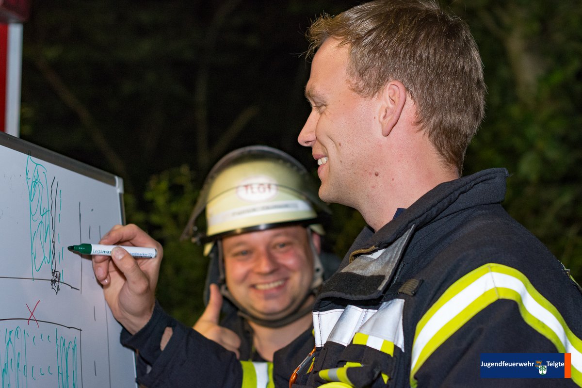Am Samstagmittag um 12 Uhr begann die 24-Stunden-Schicht. Die Jugendlichen hatten ihr Quartier in der Wache im Telgter Süden gerade bezogen und erste Einweisungen erfahren, da löste ein Alarm bereits den ersten Einsatz aus: In der Nachbarschaft wurde aufgrund eines ausgelösten Rauchmelders ein Großbrand vermutet. Eine Stunde später bereits der zweite Alarm. Dieses Mal rückte die gesamte Mannschaft mit mehreren Fahrzeugen aus: Bei Funke sei ein Großbrand ausgebrochen; zwei Personen würden vermisst. Kurze Zeit später hießt es: „Katze im Baum“: Es handelte sich zwar nur um ein Stofftier, doch der Einsatz war wie im Ernstfall.