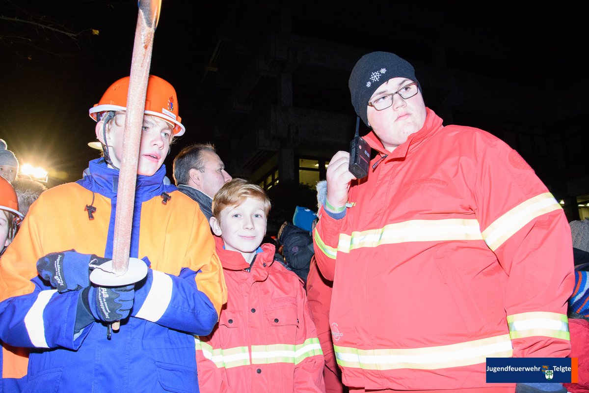 Nach der Begrüßung am Rathaus machten sich die Teilnehmer auf den Weg zur Clemenskirche. Begleitet von Fackelträgern der Feuerwehr formierte sich ein langer Zug durch die Altstadt.