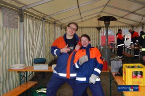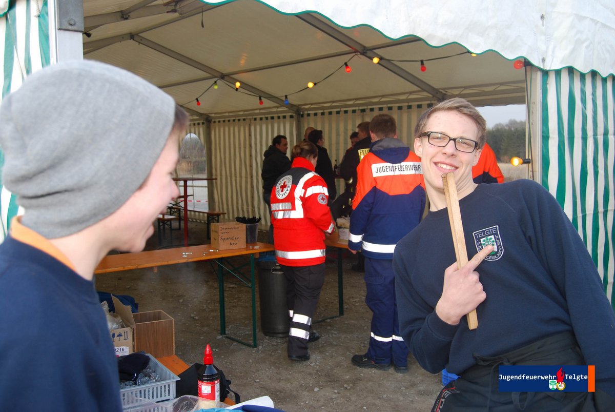 In kleinem Kreis erfreuten sich die Mitglieder der Feuerwehr, des DRK sowie Eltern, Bekannte und Nachbarn am Osterfeuer.