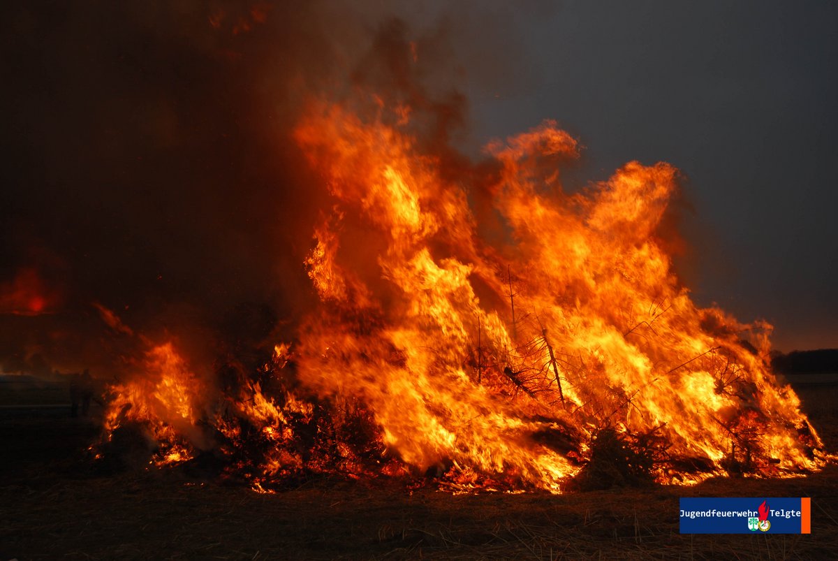 Die ausgedienten Bäume der Telgter Bürger, die Anfang Januar eingesammelt wurden, dienten als Grundlage für das große Osterfeuer.