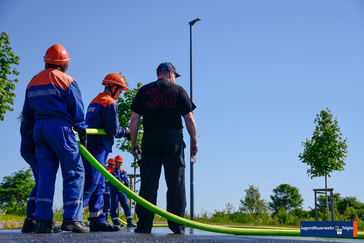 Zu Jubiläen in der Jugendfeuerwehr ist es üblich eine Aktion auf Kreisebene zu organisieren. So kamen an diesem Pfingstsonntag alle Jugendfeuerwehren aus dem Kreis Rendsburg-Eckernförde nach Büdelsdorf. Jede Jugendfeuerwehr bildete einzelne Gruppen, die zusammen mit einem Betreuer und einem Feuerwehrauto verschiedene Stationen finden und anfahren mussten.