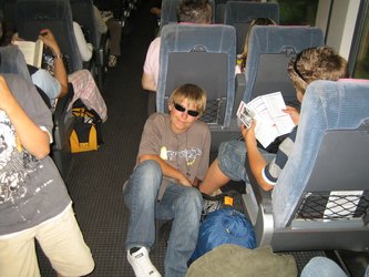 - Anfahrt zum Bahnhof mit Reisebus - Zeitgleich sind die Betreuer mit dem Material losgefahren