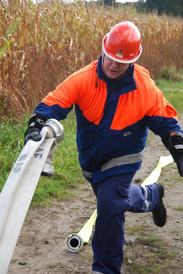 Das ist das Szenario einer Übung, die die Feuerwehr aus der Bevergemeinde für die eigene Jugend angesetzt hat. Schon die Jüngeren in Reihen der Wehr sollen ein Gefühl dafür bekommen, was auf sie als zukünftige Feuerwehrleute zukommen kann. Die Organisatoren der Übung haben für diesen „Trainingstag“ ein ganzes Bündel an Notfällen geschnürt – das Feuer bei Spahn´s Kaffeepott ist nur eine von vielen Aufgaben. Die Besonderheit dieser Übung: Die Jugendlichen der Telgter Feuerwehr sind mit im Boot, wurden als Unterstützung angefordert. „Unser Tag begann früh“, schmunzelt Jugendgruppenleiter Ronny Wilksch. Bereits um 8.30 Uhr wurden die 22 Jugendlichen zu ihren ersten Einsätzen gerufen: „Es war gleichzeitig ein simulierter Unratbrand sowie ein Unfall, bei dem Betriebsstoffe ausgelaufen sind“, erläuterte der Jugendchef. Viel Pause war den Jugendlichen nicht vergönnt: Knapp eineinhalb Stunden nach der ersten Alarmierung die zweite Übung: Es brannte eine Holzhütte. „Die Flammen waren durchaus real, auch wenn die Jugendlichen natürlich noch nicht löschen dürfen“, so der Jugendgruppenleiter. An dieser Stelle hätten Erwachsene die Junioren unterstützt. „Aber unser Nachwuchs war gefordert, die Wasserversorgung aufzubauen.“ Nach dem Brand geht es Schlag auf Schlag weiter, zahlreiche mögliche Fälle werden simuliert: Baum auf der Straße, Wasser im Keller, vermisste Person im Wald. Und um Mitternacht ein Unfall mit einer in einem Pkw eingeklemmter Person. „Wir wollen unseren Jugendlichen etwas bieten: Sie opfern ihre Freizeit und möchten natürlich auch etwas erleben“, so Wilksch. Training und Spaß stünden gleichermaßen im Vordergrund. Aber es werde durchaus ernsthafte Ausbildung betrieben. „Dazu gehört dann auch schon einmal der trockene Stoff von Dienstvorschriften.“ Vom reibungslosen Ablauf, der nur von kleinen Unsicherheiten unterbrochen wird, ist aber nicht nur die Feuerwehr angetan: Bürgermeister Joachim Schindler, der zu den Zuschauern gehörte, freute sich über das Engagement und die Begeisterung des Nachwuchses. „Wir können nur gut für die Zukunft gerüstet sein, wenn wir schon jetzt für den Nachwuchs sorgen“, sagte der Erste Bürger. Ostbevern sei zum Glück gut aufgestellt. „Ich finde es toll, dass sich Jugendliche in der Feuerwehr dem Dienst am Nächsten verpflichtet fühlen.“ „Es ist für den Nachwuchs unserer Wehr extrem wichtig, dass er üben kann. Wie sollen die jungen Menschen es sonst lernen?“, sagte Hubert Spahn, der Besitzer der „verbrannten“ Scheune. Es sei für ihn eine Selbstverständlichkeit, dass die Feuerwehr bei ihm üben dürfe. „Denn im Notfall, und davon kann ich, kann jeder betroffen sein, muss alles klappen.“