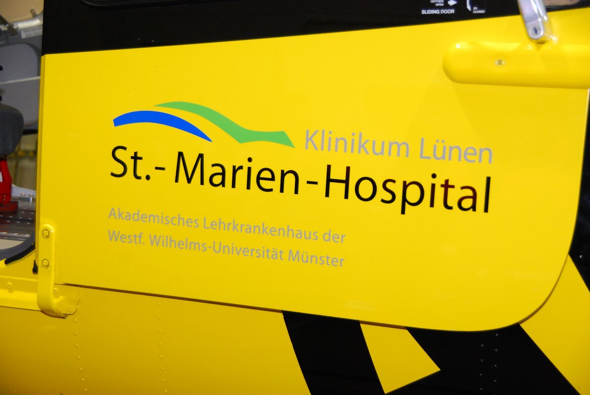 Thomas Kade, Leitender Rettungsassistent bei der Luftrettung in Lünen zeigte den Jugendlichen und Ausbildern alle Details eines Rettungshubschraubers und beantwortete viele Fragen.