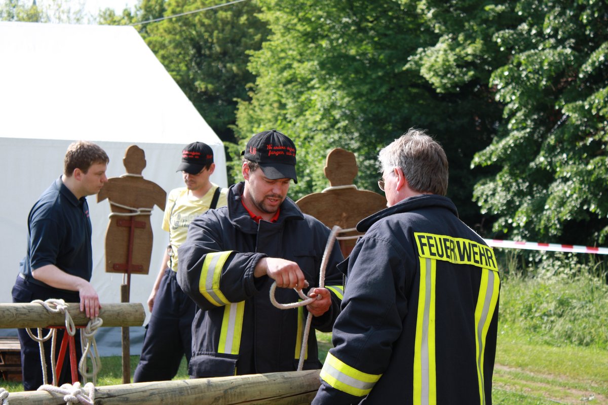 Beim Löschangriff galt es innerhalb einer festgelegten Zeit 3 Strahlrohe vorzunehmen. Feuerwehrknoten und -stiche galt es ebenso zu beherrschen wie die Theorie und die Erste Hilfe. Beim Staffellauf stand dann der sportliche Aspekt im Vordergrund.