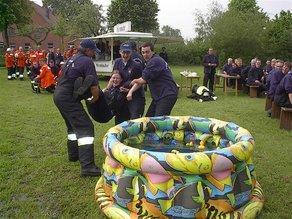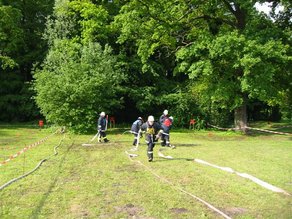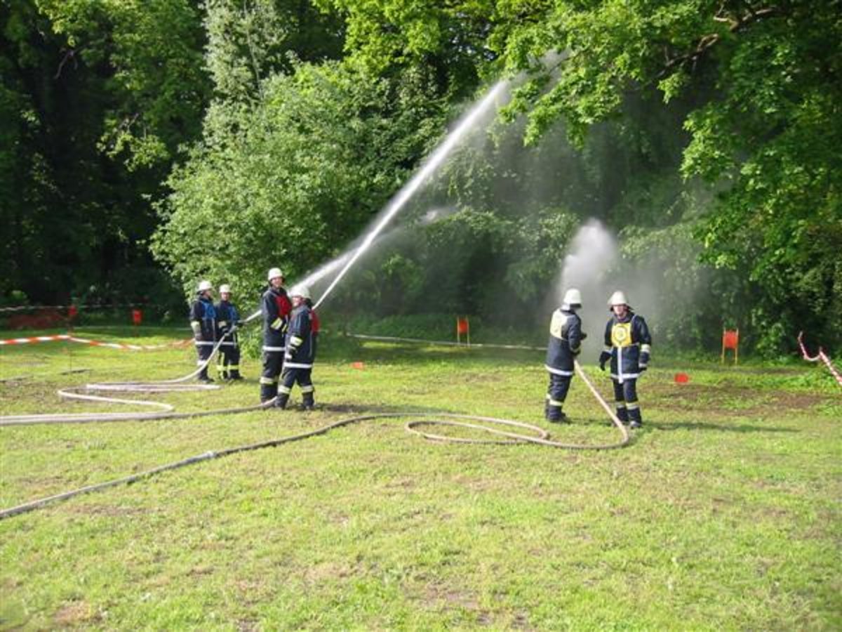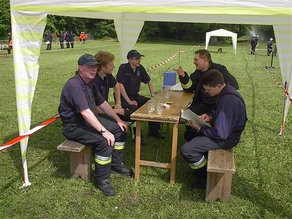 In 92 Gruppen gingen fast 800 Feuerwehrleute an den Start, um ihren Leistungsstand unter den strengen Augen von 63 Schiedsrichtern zu zeigen. Als Gäste war unter anderem das THW aus Beckum dabei, die mit einem gemischten Team nach Füchtorf gekommen waren. Beim sportlichen Teil war eine Staffelstrecke von jeweils 50 Metern in zusammen 180 Sekunden zurück zu legen. Der Weg führte dabei über einen Schwebebalken, durch eine Röhre und über ein Hindernis. Zu den Aufgaben gehörte auch die Erste Hilfe. Hier war ein Verletzter aus einem Pkw zu befreien und zu versorgen. Wichtig bei der Bergung und Rettung sind auch Seile, die natürlich mit den richtigen Knoten angebracht werden müssen. Eine Aufgabe, die sich nur einfach anhört.