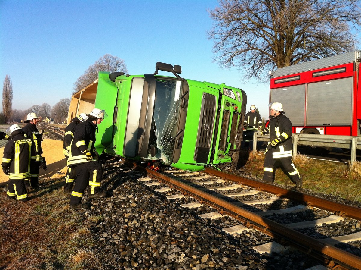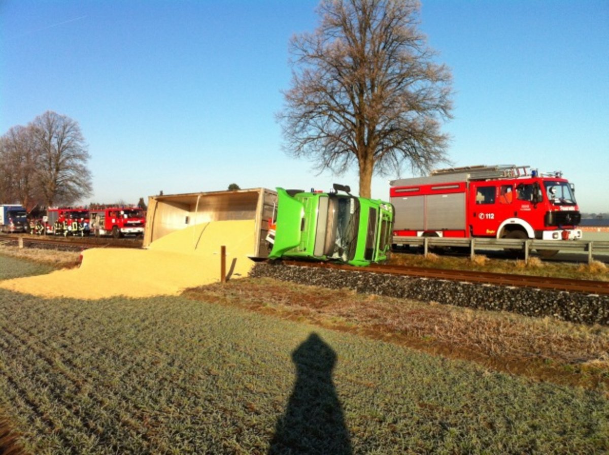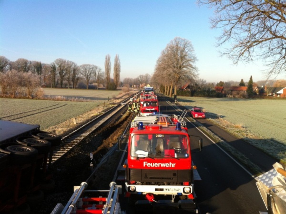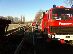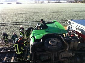 Bei der Alarmierung ging man davon aus, dass der Fahrer noch in seinem Fahrerhaus eingeklemmt sei, was sich zum Glück nicht bestätigte.