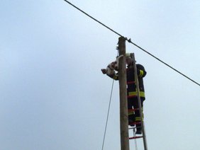 Zu einer Tierrettung rückte der Löschzug Westbevern aus. Eine Katze saß auf einem Telefonmast fest.