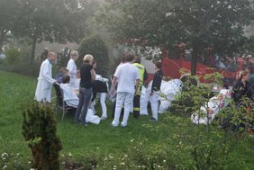 „Das hat funktioniert“, so Stadtbrandmeister Alfons Huesmann über die Rettungskette. Insgesamt waren nach Schätzungen der Polizei rund 200 Helfer mit etwa 50 Rettungswagen sowie 30 Feuerwehr- und Polizeifahrzeugen in Telgte.