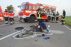 Schwere Verletzungen erlitt ein Motorradfahrer bei einem Unfall am Montagmorgen in Telgte. Auf der Wolbecker Straße in Höhe des Abzweiges zum Hof lütke Zutelgte war es zu einem Zusammenstoß gekommen. Foto: Große Hüttmann
