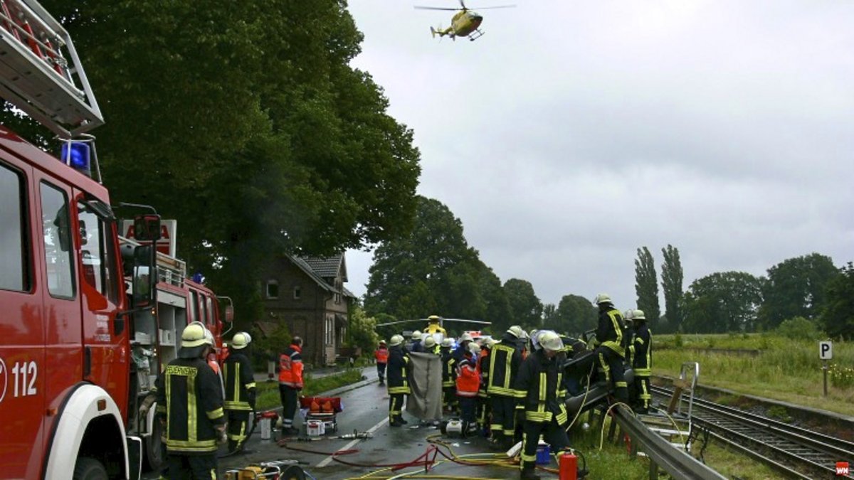 Eine schwerverletzte Personen wurden mit dem Rettungshubschraubern in die Uni-Klinik Münster geflogen, alle weiteren Verletzten wurden in umliegende Krankenhäuser befördert.