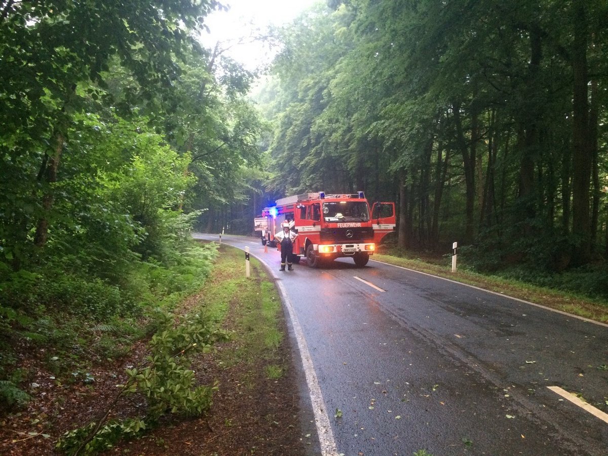 Nach der Gewitternacht rückten am Morgen Kräfte zur K18 aus.