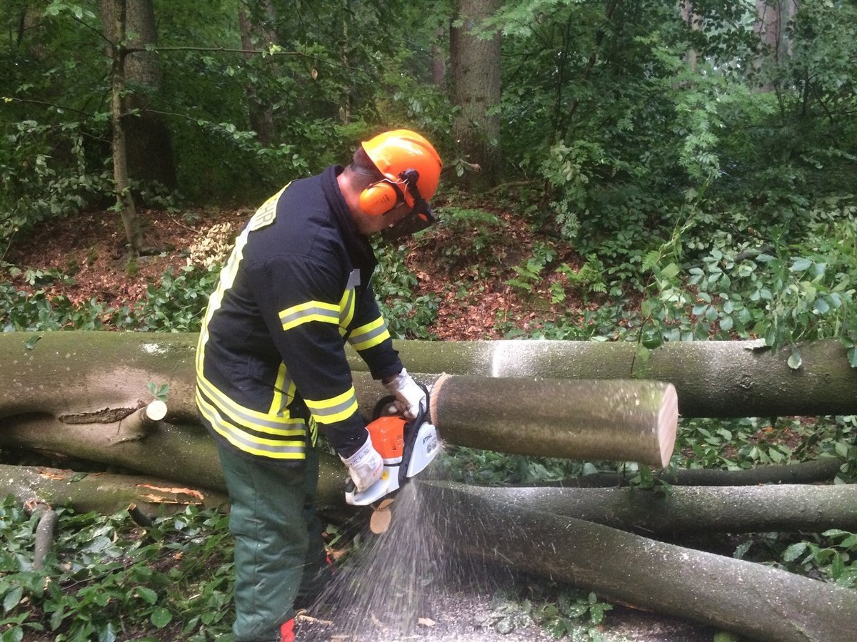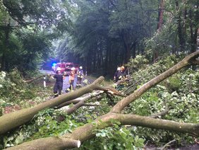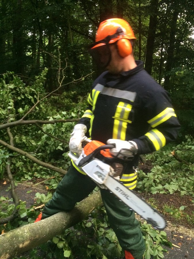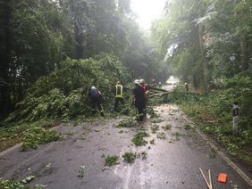 Ein umgefallener Baum musste von der Straße geräumt werden.
