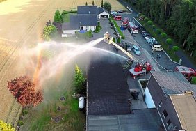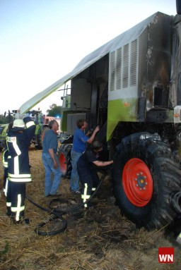 Ein weiterer Brand, der ebenfalls durch einen Mähdrescher ausgelöst wurde, fordert die Feuerwehr am Samstag. In der Westbeverner Bauerschaft Wiewelhook fing eine Landmaschine Flammen. Zwar gelang es dem Fahrer, das Feuer an der Maschine selbst zu löschen, doch in der Zwischenzeit hatten die Flammen bereits auf das Feld übergegriffen. Rund 15000 Quadratmeter - bereits abgeerntete Flächen und Getreide - standen in Flammen. Der Einsatz dauerte lange.