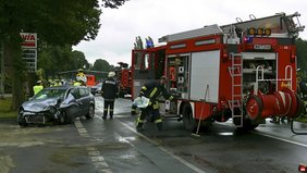 Sämtliche Einheiten der Feuerwehr Telgte wurden zusammen mit einem Großaufgebot an Rettungsmitteln alarmiert. Nach erster Meldung waren zwei PKW kollidiert, mindestens eine Person sollte eingeklemmt sein.