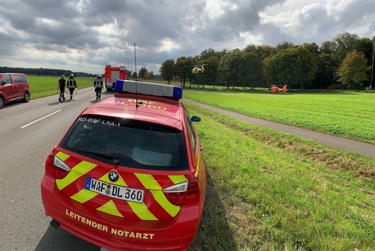 Ein Pkw-Fahrer war mit seinem Fahrzeug und in Begleitung einer weiteren Person nach ersten Ermittlungen in Richtung Münster unterwegs, als er von der Fahrbahn abkam und etliche Meter durch den nahen, weitläufigen Straßengraben fuhr. Verletzt wurde niemand.