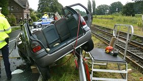 Beim ersten Eintreffen der Feuerwehr wurde ein PKW auf dem Bahnhofsgelände, der zweite PKW auf dem Geländer der gegenüberliegenden Tankstelle aufgefunden. Insgesamt waren 6 Personen, darunter zwei Kinder verletzt.