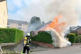 Die ersten Löschversuche von Nachbarn mit einem Gartenschlauch waren zwar gut gemeint, aber weitgehend wirkungslos. Erst als die Feuerwehr am Freitag bei einem Heckenbrand am Brüder-Grimm-Weg eintraf und mit einem Strahlrohr gegen die Flammen vorging, war alles schnell gelöscht. Personen wurden nicht verletzt, und auch wenn die Flammen zeitweilig meterhoch waren, wurde ein nebenstehendes Haus nicht in Mitleidenschaft gezogen. Entstanden war das Feuer nach ersten Angaben beim Abflämmen von Unkraut.