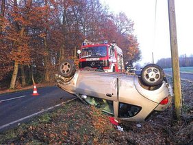 Die Telgter Feuerwehr war vor Ort. Kompliziert gestaltete sich die Bergung des Kleinwagens. Dafür wurde ein Kran angefordert. Die L 811 war deshalb einige Zeit komplett gesperrt.