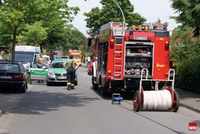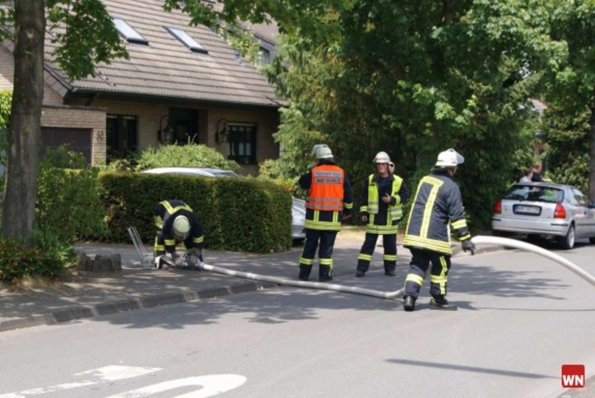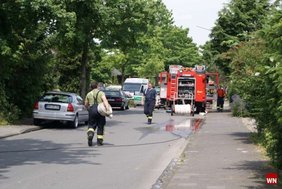 Die Hausbewohner hatten das Leck festgestellt und sofort die Feuerwehr alarmiert. Die Ehrenamtlichen rückten mit einem Großaufgebot an Kräften und Fahrzeugen aus, da eine Explosionsgefahr nicht ausgeschlossen werden konnte.
