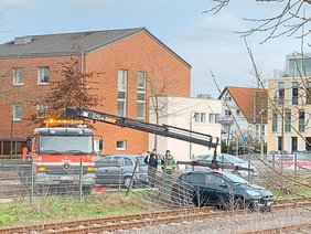 Um keinen weiteren Schaden am Fahrzeug zu verursachen wurde ein Abschleppunternehmen mit einem Kran bestellt, um das Fahrzeug von den Schienen zu heben. Der alarmierte Notfallmanager der Bahn war ebenfalls vor Ort.