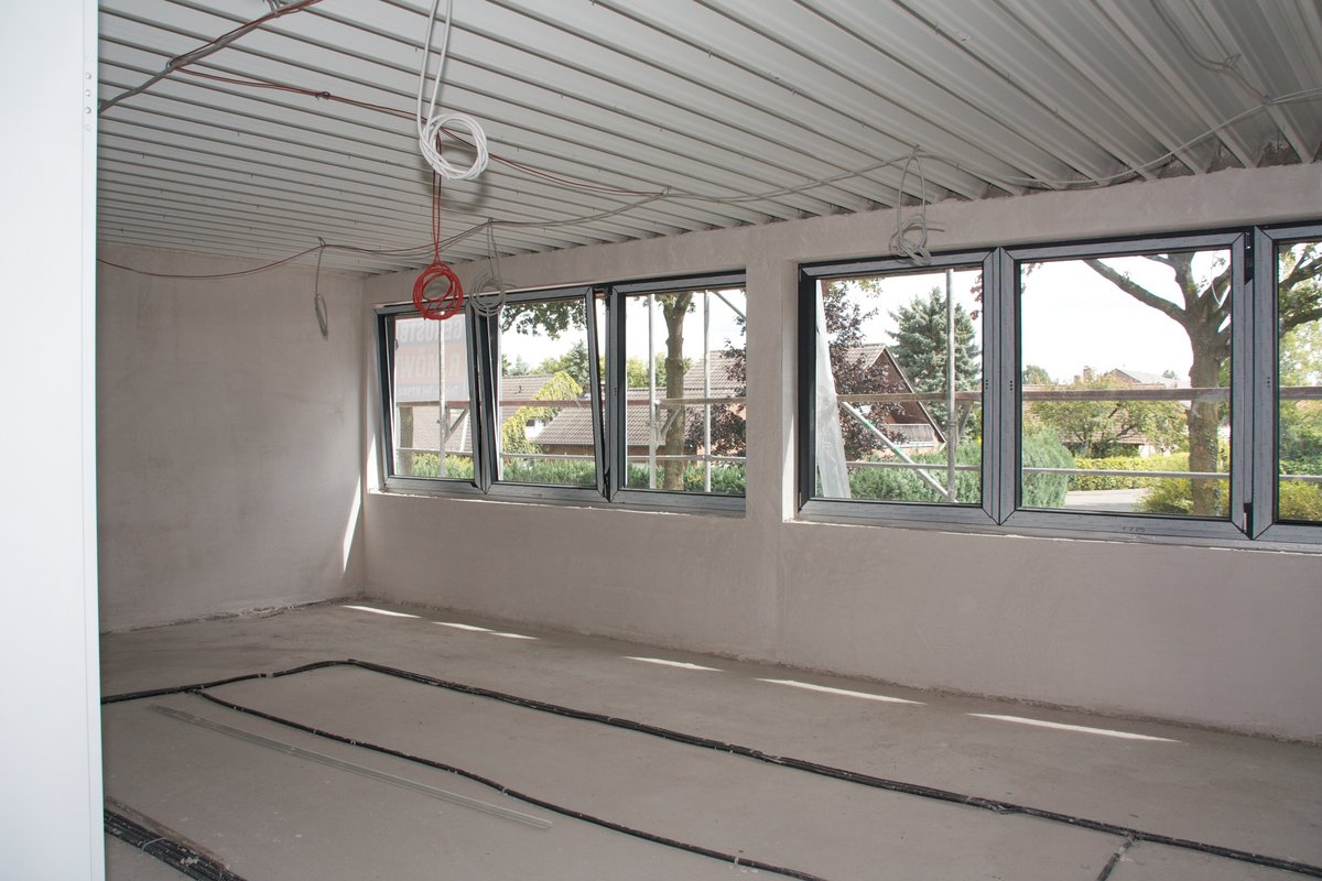 Fenster und Türen sind komplett vorhanden, nur die Fahrzeugtore fehlen noch.