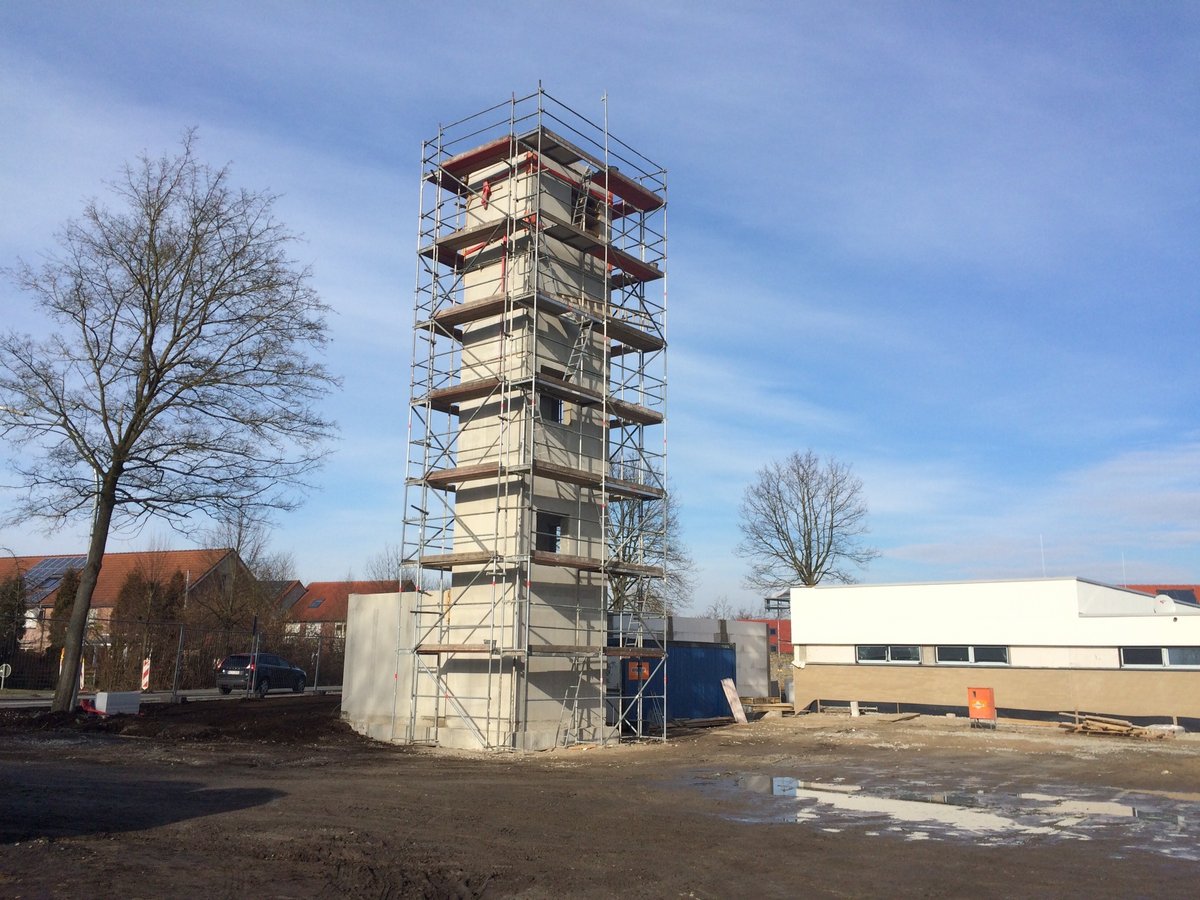 Die Außenarbeiten schreiten voran, der Übungsturm ist fast fertig und im Inneren schreiten die Arbeiten voran.
