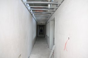 Seit dem letzten Bericht hat sich sehr viel getan. Der Boden in der Fahrzeughalle und allen Räumen außer dem Schulungsraum ist gelegt. Fast alle Räume und Bereiche sind gestrichen. Die Elekro-Unterverteilungen sind fertig, alle Schalter und Dosen sitzen, nur Lampen fehlen noch. Abgehängte Decken sind fast fertig.